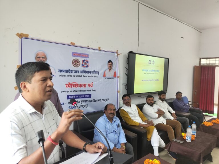 TNI24 मध्य प्रदेश जन अभियान परिषद स्थापना दिवस पर किया गया पौधारोपण*मध्य प्रदेश जन अभियान परिषद के स्थापना दिवस का हुआआयोजनमध्य प्रदेश जन अभियान परिषद की स्थापना दिवस पर जिला मुख्यालय अनूपपुर के शासकीय तुलसी महाविद्यालय में 4 जुलाई 2025 को जन अभियान परिषद अनूपपुर द्वारा स्थापना दिवस मनाया गया। इस अवसर पर जिला स्तरीय संगोष्ठी कार्यक्रम का आयोजन किया गया तथा एक पेड़ मां के नाम अभियान के तहत पौधारोपण किया गया। कार्यक्रम का शुभारंभ कार्यक्रम के मुख्य अतिथि कोल विकास प्राधिकरण के अध्यक्ष (केबिनेट मंत्री दर्जा)श्री रामलाल रौतेल द्वारा सरस्वती जी की प्रतिमा पर दीप प्रज्वलित कर किया गया। इस अवसर पर श्री रौतेल जी द्वारा मध्य प्रदेश जन अभियान परिषद स्थापना दिवस पर मुख्यमंत्री जी के संदेश का वाचन किया गया। अपने उद्बोधन में उन्होंने कहा कि आज हम सब यहां पर मध्य प्रदेश जन अभियान परिषद के स्थापना दिवस के पावन अवसर पर एकत्रित हुए हैं यह दिन हम सभी के लिए गौरव का अवसर है जब हम उन सपनों और प्रयासों को स्मरण करते हैं जिनके कुशल मार्गदर्शन में यह परिषद स्थापित हुई थी। मध्य प्रदेश जन अभियान परिषद का जन्म एक महान विचार जन सहभागिता के साथ हुआ । इसका तात्पर्य है कि किसी भी कार्य को करने में सभी लोग मिलकर प्रयास करें तो किसी भी चुनौती का सामना एकजुट होकर किया जा सकता है। विगत वर्षों में जन अभियान परिषद ने अनेकों क्षेत्र में अभूतपूर्व कार्य किये जिसमें शिक्षा स्वास्थ्य स्वच्छता पर्यावरण संरक्षण जल गंगा अभियान और अजीविका सृजन जैसे विषयों में हजारों लोगों के जीवन में सकारात्मक बदलाव आए हैं। इस अवसर पर जन अभियान परिषद के संभाग समन्वयक श्री भीम सिंह डामोर ने कहा कि विगत वर्षों में जन अभियान परिषद द्वारा सामाजिक क्षेत्र में अनेकों कार्य किए गए जिसमें हर कार्य में आम नागरिकों की सक्रिय भागीदारी एवं सभी योजनाओं में पारदर्शिता के साथ काम करना, हर वर्ग विशेष कर वंचित समुदाय के सशक्तिकरण का प्रयास किया गया ।नवांकुर एवं प्रस्फुटन समितियां के माध्यम से गांव के लोगों को साथ में लेकर सामाजिक जागरूकता के कार्य किए गये। सीएमसीएलडीपी अंतर्गत हजारों बच्चों को विद्यालय के साथ जोड़ा गया। इस अवसर पर महाविद्यालय के प्राचार्य नीरज निगम ने कहा कि मध्य प्रदेश जन अभियान परिषद सामाजिक क्षेत्र में अच्छा कार्य कर रहा है जनभागीदारी से किए गए कार्य गांव के लोगों के बीच एक सेतु का काम कर रहा है जिससे लोगों में जागरूकता बढ़ी है। महाविद्यालय के पूर्व प्राचार्य श्री संत ने स्थापना दिवस की शुभकामनाएं बधाई देते हुए कहा कि जन अभियान परिषद गांवों मे आमजनो के साथ मिलकर जन जागरूकता का कार्य कर उन्हें प्रशिक्षित करने का क