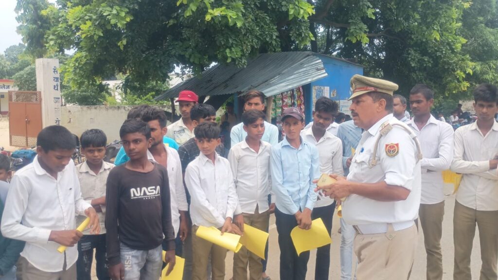 यातायात प्रभारी द्वारा चालकों को पढ़ाया जा रहा यातायात नियमों का पाठ।