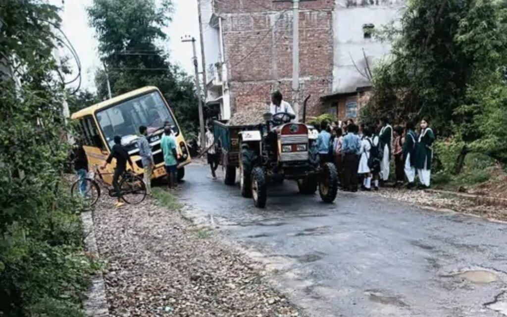 चालक की सूझबूझ से बस पलटने से बच गई। इससे कोई जानमाल का नुकसान नहीं हुआ। स्थानीय लोगों ने बताया कि बस में करीब 25 विद्यार्थी सवार थे।