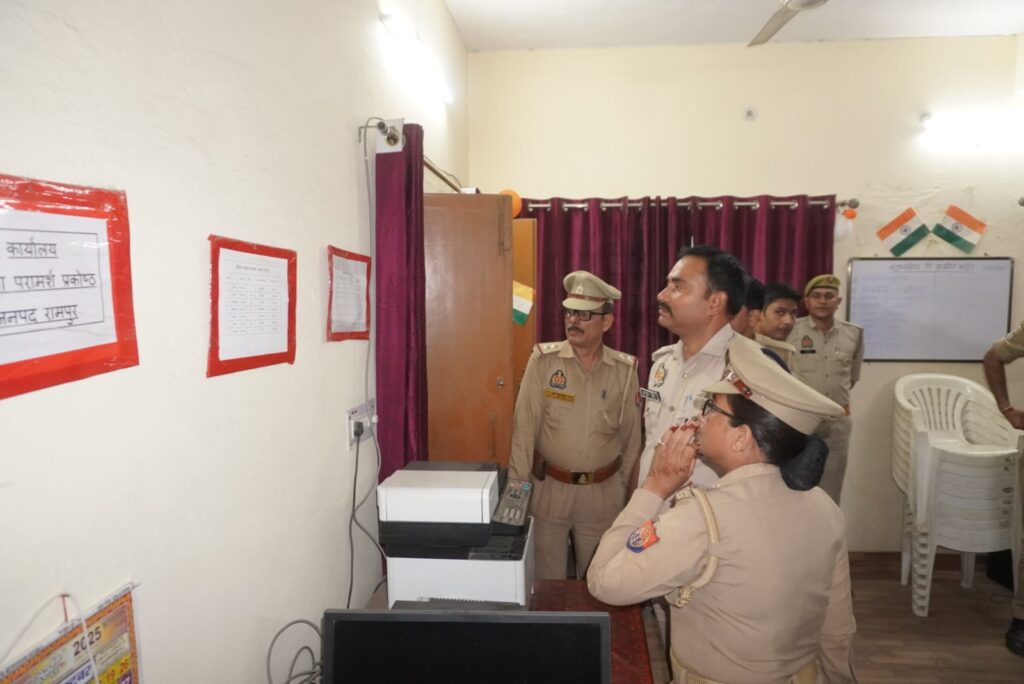 अपर पुलिस अधीक्षक, रामपुर द्वारा महिला थाना का किया गया आकस्मिक निरीक्षण आज दिनांक 12.10.2025 को रामपुर से शारिक खान की रिपोर्ट पुलिस अधीक्षक, रामपुर के निर्देशन में अपर पुलिस अधीक्षक, रामपुर द्वारा महिला थाना, रामपुर का आकस्मिक निरीक्षण किया गया, निरीक्षण के दौरान कार्यालय, मालखाना, भोजनालय, थाना परिसर में आवासों की स्थिति, साफ-सफाई, रख-रखाव, निर्माण मरम्मत कार्य व थाना कार्यालय पर बने अपराध रजिस्टर, त्यौहार रजिस्टर, मालखाना रजिस्टर, विवेचना रजिस्टर, फ्लाई शीट आदि एवं उनके रख रखाव, साफ-सफाई, उनमें अंकित की जाने वाली प्रविष्टयों को चैक किया गया, साथ ही मिशन शक्ति फेज 5.0 अभियान के अन्तर्गत थाना परिसर में बने मिशन शक्ति केन्द्र का निरीक्षण* कर सम्बन्धित को आवश्यक दिशा निर्देश दिये गये