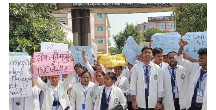 छात्र-छात्राओं का आरोप है कि कॉलेज प्रबंधन ने बिना INC (इंडियन नर्सिंग काउंसिल) अप्रूवल के ही उनका बीएससी नर्सिंग में दाखिला कर लिया, जिससे उनके भविष्य पर संकट मंडरा रहा है। उनका कहना है कि कॉलेज ने छात्रों से एडमिशन के नाम पर मोटी फीस ली, लेकिन अब यह सामने आ रहा है कि संस्थान को नर्सिंग कोर्स चलाने की अधिकारिक मान्यता प्राप्त नहीं है।प्रदर्शन के दौरान छात्रों ने बताया कि कॉलेज की वेबसाइट पर भी गलत जानकारी डालकर भ्रम फैलाया गया, ताकि छात्रों को यह लगे कि कॉलेज को INC की मान्यता मिल चुकी है। उन्होंने कहा कि जब इस विषय में प्रबंधन से बातचीत की जाती है तो संतोषजनक जवाब नहीं मिलता।छात्रों ने मांग की है कि उनकी फीस वापस की जाए और किसी मान्यता प्राप्त कॉलेज में ट्रांसफर की व्यवस्था की जाए। साथ ही चेतावनी दी है कि अगर उनकी समस्याओं का समाधान नहीं हुआ तो वे जिलाधिकारी से मिलकर अपनी बात रखेंगे और बड़ा आंदोलन करेंगे।इंडियन नर्सिंग काउंसिल (INC) भारत में नर्सिंग शिक्षा के लिए एक नियामक संस्था है, जो देशभर के नर्सिंग कॉलेजों के लिए मानक और दिशा-निर्देश निर्धारित करती है। बीएससी नर्सिंग पाठ्यक्रम संचालित करने वाले संस्थानों को INC की मान्यता अनिवार्य रूप से लेनी होती है, अन्यथा ऐसे संस्थानों से जारी डिग्री भविष्य में अमान्य मानी जा सकती है।कॉलेज प्रबंधन का पक्ष