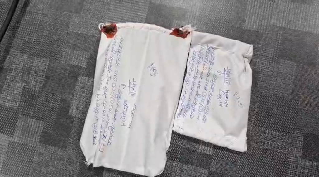 पुलिस ने उनके पास से एक चाकू, एक काला बैग (जिसमें आधार कार्ड और रजिस्टर) तथा एक मोबाइल फोन बरामद किया है।