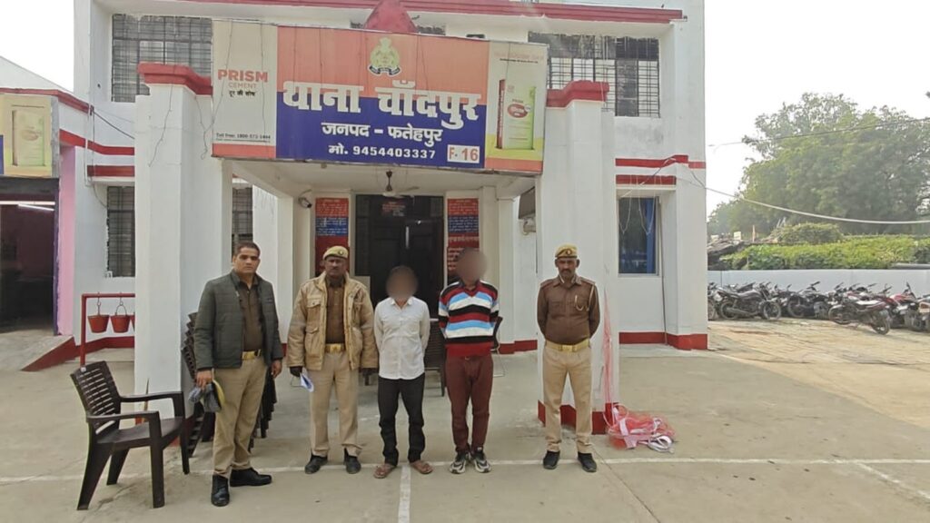 फतेहपुर। पुलिस अधीक्षक अनूप कुमार सिंह के निर्देशन में वांछित और वारंटी अभियुक्तों के खिलाफ चलाए जा रहे अभियान के तहत चांदपुर पुलिस को बड़ी सफलता मिली है। बुधवार को थाना चांदपुर पुलिस ने दो वारंटी अभियुक्तों को गिरफ्तार कर न्यायालय भेज दिया।गिरफ्तार किए गए आरोपियों में धर्मेन्द्र कुमार उर्फ पतरिया (उम्र लगभग 39 वर्ष) निवासी ग्राम रूरा, जो मारपीट और गाली-गलौज से जुड़े पुराने मामले में वांछित चल रहा था। दूसरा अभियुक्त कल्लू यादव उर्फ राजू (उम्र लगभग 48 वर्ष) निवासी ग्राम साल्हेपुर है, जिस पर अवैध असलहे के मामले में न्यायालय से वारंट जारी था। दोनों अभियुक्तों को गिरफ्तार करने वाली पुलिस टीम में उपनिरीक्षक धीरेन्द्र कुमार पाण्डेय, उपनिरीक्षक श्याम बिहारी, कांस्टेबल बृजेश वर्मा और कांस्टेबल अनवर खां शामिल रहे। पुलिस का कहना है कि अभियान आगे भी जारी रहेगा और सभी वांछित अभियुक्तों को जल्द गिरफ्तार किया जाएगा।