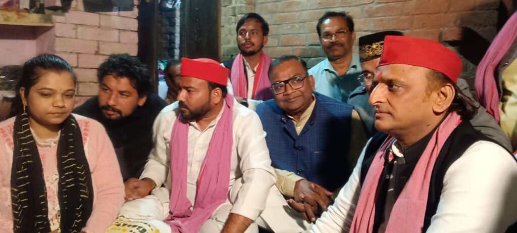 अखिलेश यादव ने खजुहा पहुँचकर पीड़ित परिवार को दी 2 लाख की मदद