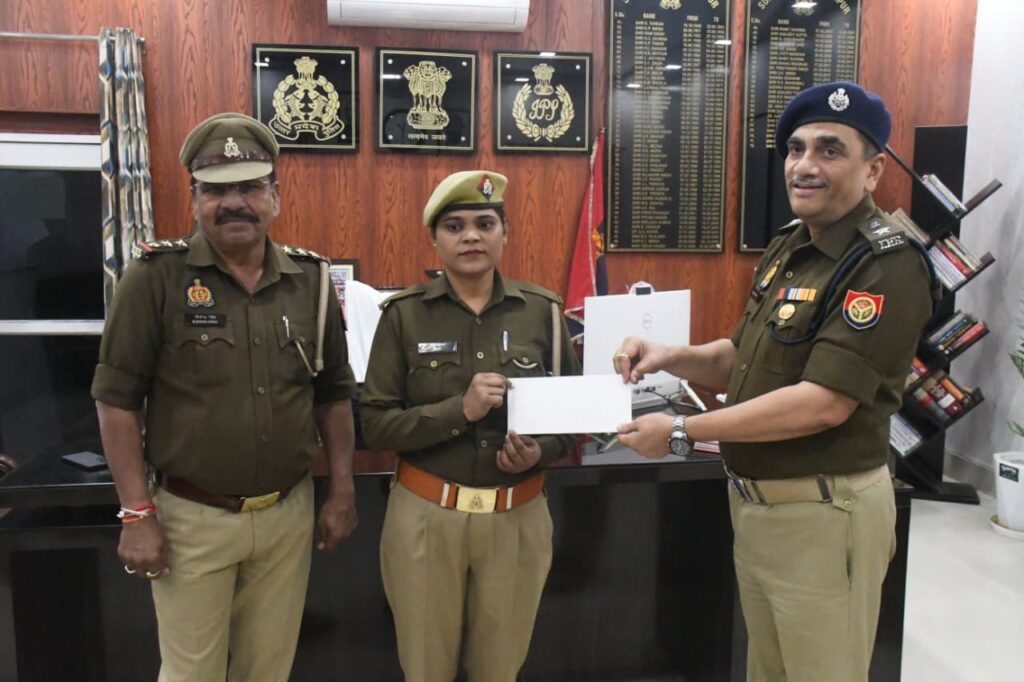 महिला आरक्षी निक्की थाना भोट वरिष्ठ अधिकारियों द्वारा प्रदान किया गया यह सम्मान पुलिस कर्मियों के श्रेष्ठ कार्य, कर्तव्यनिष्ठा, लगन, तथा बीट प्रबंधन में उनकी दक्षता का प्रतीक है।