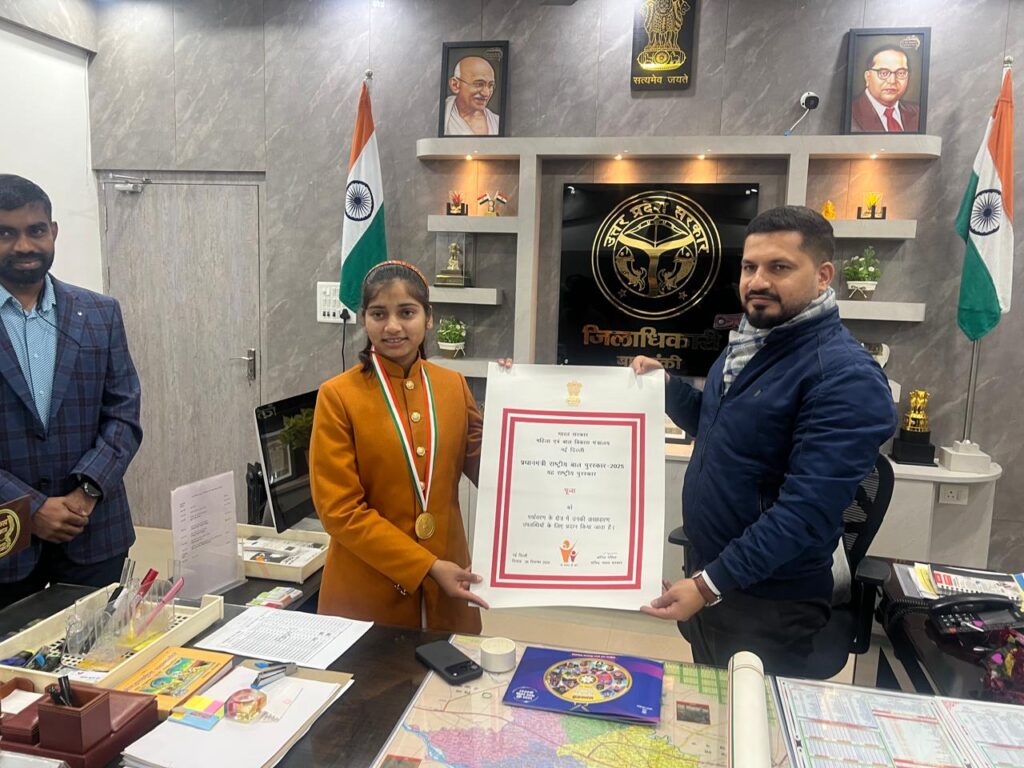 बाराबंकी। जनपद की होनहार बाल वैज्ञानिक पूजा पाल को प्रधानमंत्री राष्ट्रीय बाल पुरस्कार से सम्मानित किए जाने के उपरांत मंगलवार को जिलाधिकारी शशांक त्रिपाठी ने कलेक्ट्रेट में सम्मानित किया। इस अवसर पर जिलाधिकारी ने पूजा पाल की उपलब्धि को जनपद के लिए गौरव का क्षण बताते हुए उनके उज्ज्वल भविष्य की कामना की।