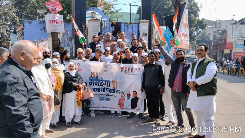 मुजफ्फरनगर। मुज़फ्फरनगर में आज सियासत सड़कों पर उतर आई। भारतीय राष्ट्रीय कांग्रेस ने “मनरेगा बचाओ संग्राम” के तहत जोरदार पदयात्रा निकालकर केंद्र और प्रदेश सरकार पर सीधा हमला बोला। झांसी की रानी चौराहे से शुरू हुई यह पदयात्रा कचहरी गेट स्थित अंबेडकर मूर्ति तक पहुंची, जहां सभा में सरकार की नीतियों को गरीब, किसान और मजदूर विरोधी बताते हुए तीखा प्रहार किया गया। नेताओं ने आरोप लगाया कि मनरेगा को कमजोर कर गांव की अर्थव्यवस्था की कमर तोड़ी जा रही है।