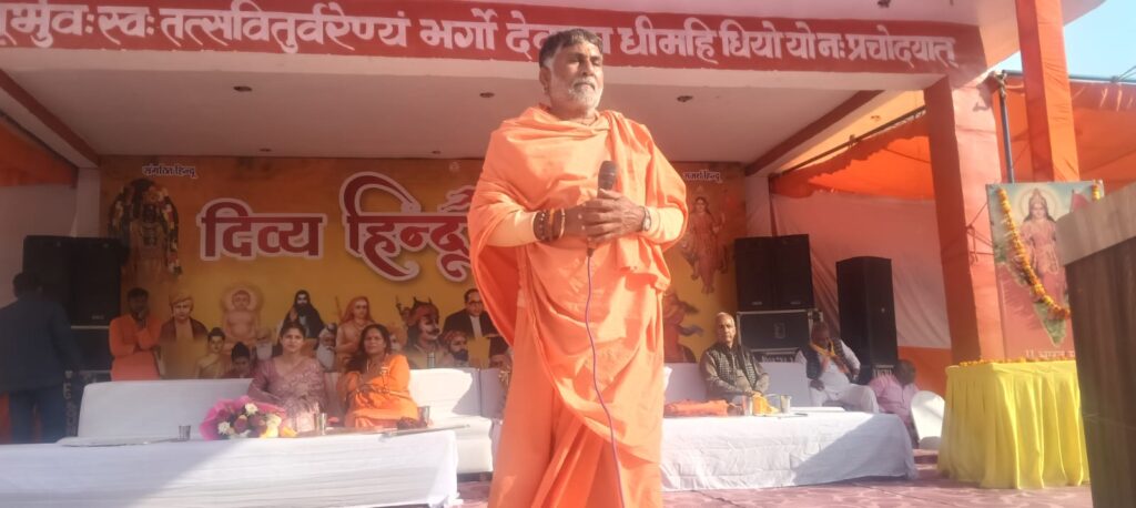 सभा को संबोधित करते हुए साध्वी प्राची, स्वामी यशवीर महाराज और अन्य वक्ताओं ने समाज में एकजुटता पर बल दिया। संघ के क्षेत्र प्रचारक महेंद्र सिंह ने संगठन के 100 वर्षों की यात्रा और पंच परिवर्तन जैसे अभियानों की जानकारी दी।