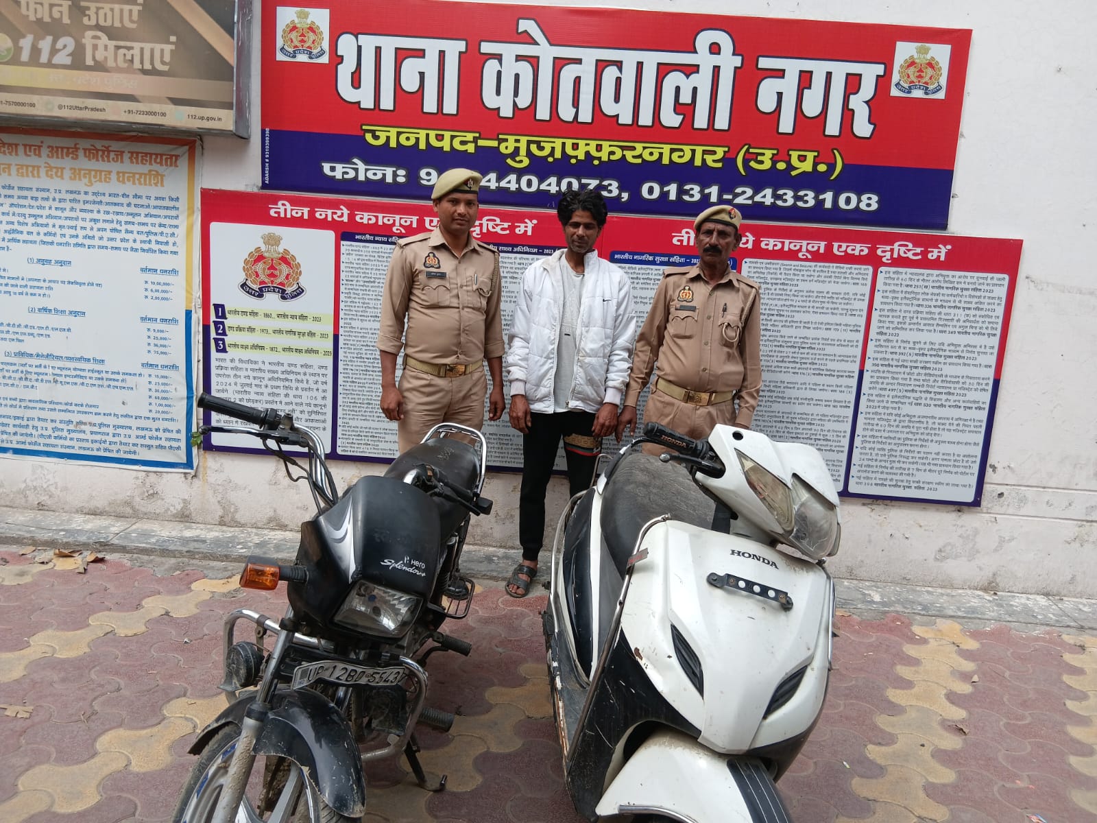 मुजफ्फरनगर। जनपद में बढ़ती वाहन चोरी की घटनाओं पर अंकुश लगाने के लिए सक्रिय कोतवाली नगर पुलिस ने बड़ी कामयाबी हासिल करते हुए एक शातिर वाहन चोर को चोरी की बाइक और स्कूटी समेत गिरफ्तार कर लिया। पुलिस की इस कार्रवाई से वाहन चोर गिरोहों में हड़कंप मच गया है।