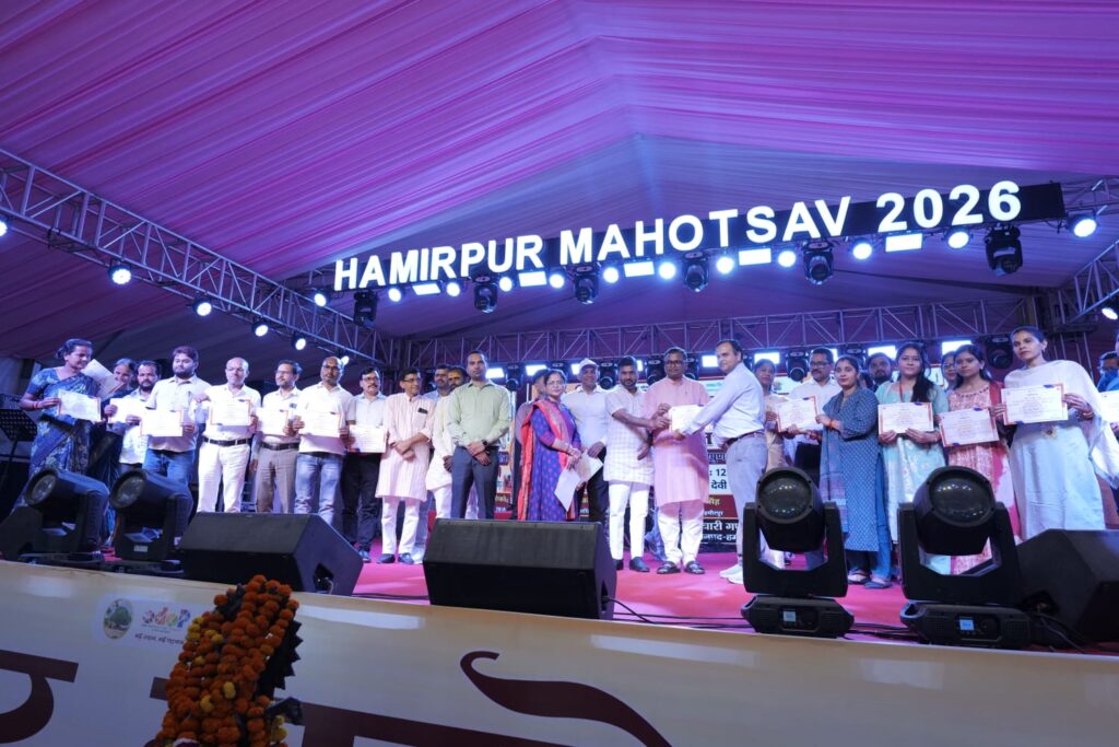 हमीरपुर। मुख्यालय के चौरादेवी प्रांगण में चल रहे हमीरपुर महोत्सव में जनपद के निपुण हुए 227 निपुण विद्यालय के शिक्षकों को सम्मानित कर प्रशस्ति-पत्र प्रदान किये गये। कार्यक्रम का शुभारंभ सदर विधायक डा. मनोज कुमार प्रजापति ने दीप प्रज्ज्वलित कर किया।