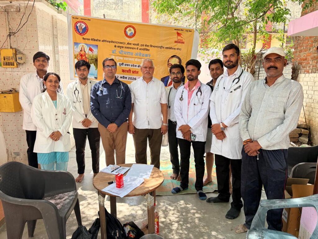 गाजीपुर। भारत रत्न डॉ. भीमराव अंबेडकर जी की जयंती के उपलक्ष्य में रविवार, 12 अप्रैल 2026 को जिले की 10 विभिन्न सेवा बस्तियों में विशाल निःशुल्क स्वास्थ्य शिविर का सफल आयोजन किया गया। यह शिविर राष्ट्रीय मेडिकल ऑर्गेनाइजेशन (NMO) इकाई, गाजीपुर मेडिकल कॉलेज द्वारा सेवा भारती के सहयोग से आयोजित किया गया।