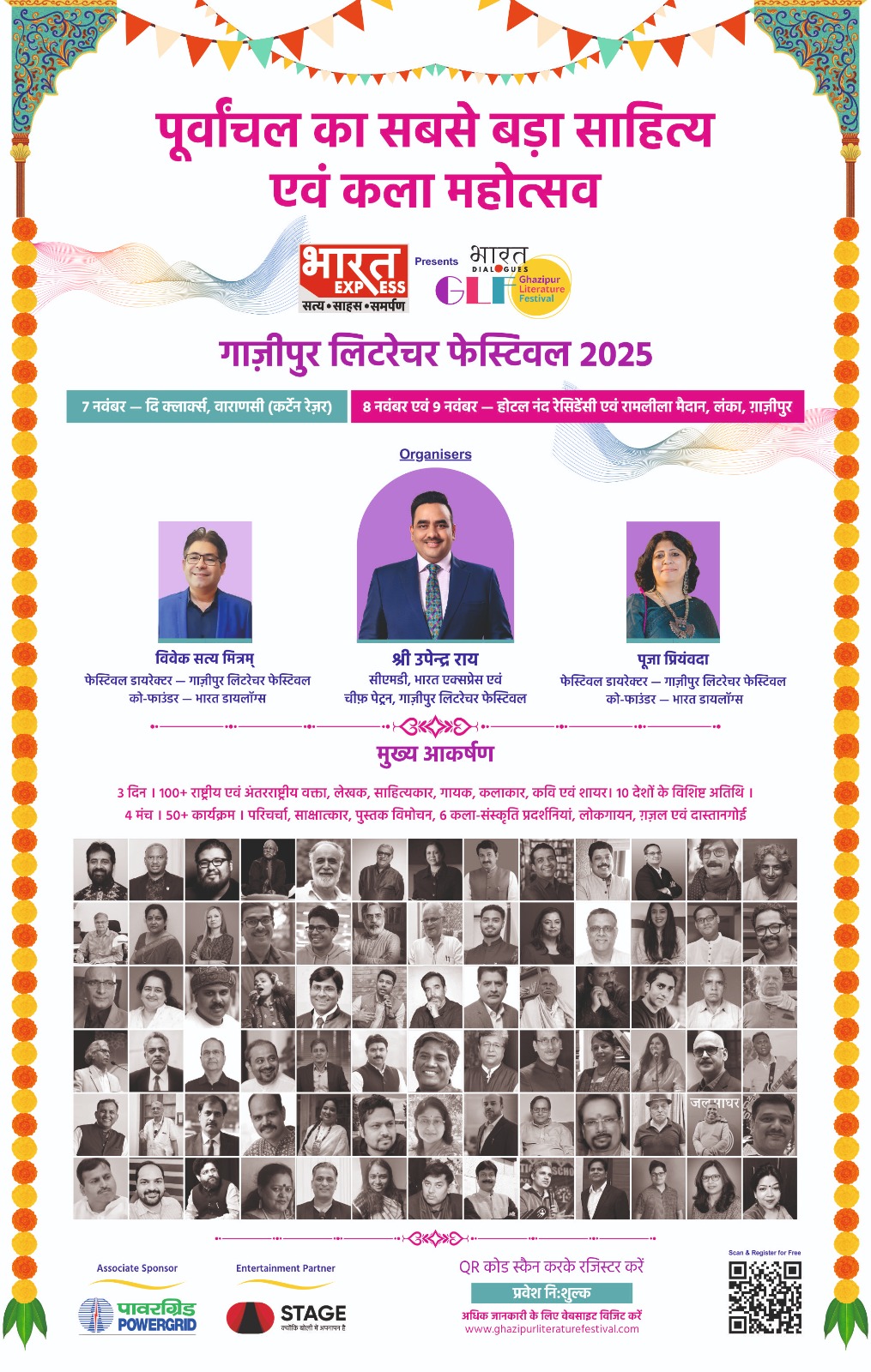 महोत्सव का मुख्य आयोजन 7 नवम्बर को वाराणसी के होटेल दी क्लार्क्स में जबकि 8 और 9 नवंबर को गाजीपुर के होटल नंद रेजिडेंसी और अति प्राचीन रामलीला मैदान लंका में होगा। “जड़ो की ओर” टॉपिक पर केंद्रीत इस महोत्सव में राष्ट्रीय और अंतर्राष्ट्रीय वक्ता, लेखक, साहित्यकार, गायक, कलाकार, कवि और शायर भाग लेंगे। भारत एक्सप्रेस न्यूज नेटवर्क के सीएमडी उपेंद्र राय और भारत डायलॉग्स की सह-संस्थापक पूजा प्रियंवदा भी इस कार्यक्रम में उपस्थित रहेंगी।