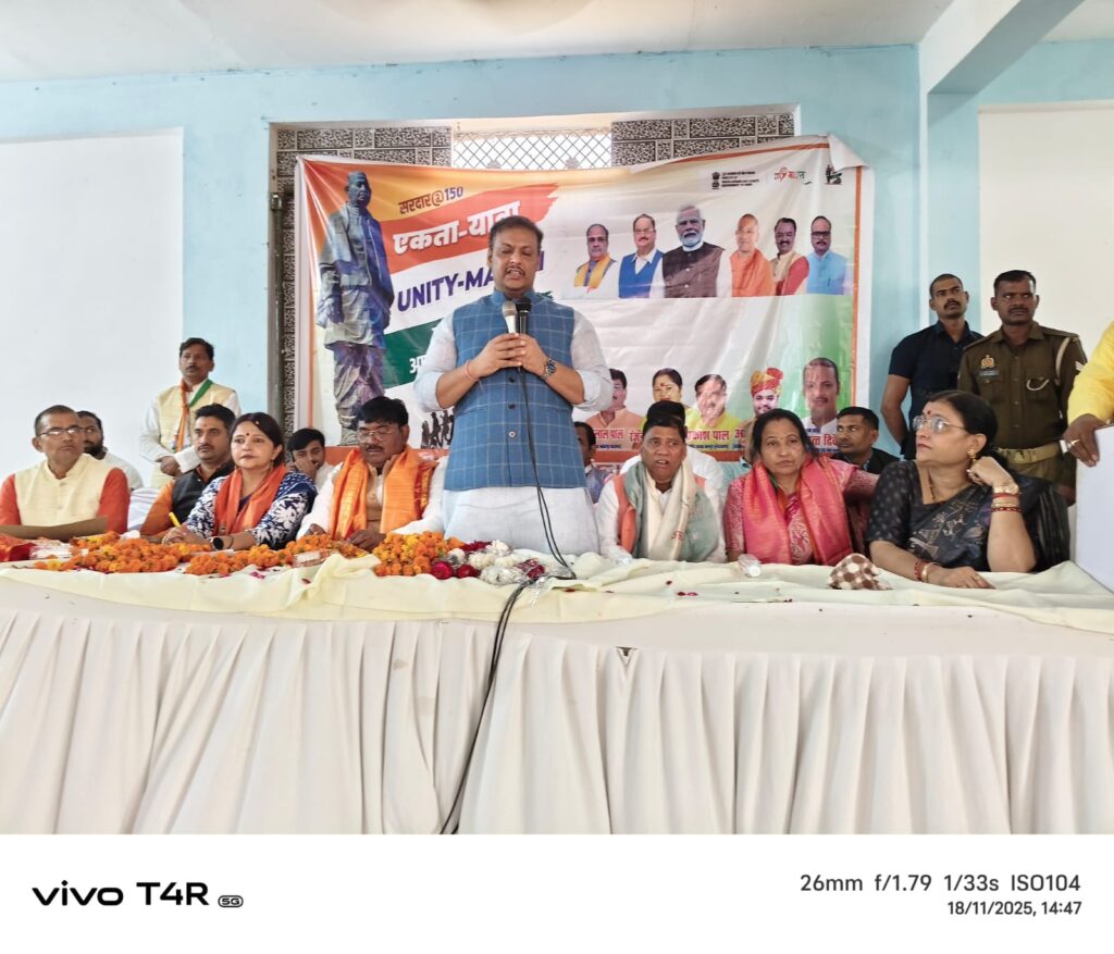 कार्यक्रम का शुभारंभ बीएनयू कालेज जहानाबाद से विधायक राजेंद्र सिंह पटेल ने फीता काट कर किया।दस किलोमीटर की पद यात्रा में जगह-जगह पर कार्यकर्ताओं ने जलपान में केला इत्यादि फलों और खाने पीने की वस्तुएं उपलब्ध कराई। पदयात्रा के दौरान कार्यकर्ताओं ने सरदार पटेल अमर रहे के जयघोष लगायें। तत्पश्चात कार्यक्रम का समापन अमौली में स्थित मौसमी गेस्ट हाउस में किया गया। जहां पर पहुंचे मुख्य अतिथि प्रदेश अध्यक्ष प्रांशु दत्त द्विवेदी, फतेहपुर जिलाअध्यक्ष मुखलाल पाल सरदार पटेल की मूर्ति पर माल्यार्पण कर दीप जलाकर उन्हें नमन किया। इसके बाद वर्तमान सरकार की उपलब्धियां गिनाते हुए लौह पुरुष सरदार वल्लभ भाई पटेल के साथ हुएं भेदभाव के बारे व्याख्यान किया। जहां विधायक राजेंद्र सिंह पटेल ने बताया कि सरदार वल्लभ भाई पटेल व जवाहरलाल नेहरू के बीच देश का प्रथम प्रधानमंत्री बनने में वोट के दौरान भेदभाव किया गया था। इसके साथ उनको भारत रत्न दिए जाने को लेकर पक्षपात किया गया था। जहां देश के वर्तमान प्रधानमंत्री ने लौह पुरुष सरदार वल्लभ भाई पटेल की मूर्ति “स्टेचू ऑफ यूनिटी” बनवा कर उन्हें बराबर का सम्मान दिया। रन फॉर यूनिटी का कार्यक्रम संपूर्ण प्रदेश में 1 नवंबर से 25 नवंबर तक चलाया जा रहा है। कार्यक्रम का संचालन ओमप्रकाश के द्वारा किया गया।इस मौके पर मुख्य अतिथि प्रदेश अध्यक्ष प्रांशु दत्त द्विवेदी,फतेहपुर जिला अध्यक्ष मुखलाल पाल, जहानाबाद विधायक राजेंद्र सिंह पटेल, जिला मंत्री रेखा मिश्रा,जिला मंत्री मनोज मिश्रा, युवा मोर्चा जिलाध्यक्ष मधुराज विश्वकर्मा,मंडल अध्यक्ष संतोष गुप्ता, डॉ राम भक्त वर्मा, साहब सिंह गौतम, अरुण शुक्ला,सुतीक्षण सिंह,रोहन श्रीवास्तव, प्रांजल पाण्डेय, आशीष वर्मा,अवधेश मिश्रा, विवेक उत्तम,मोना शुक्ला, रजत सिंह, शुभम ठाकरे, अमौली चौकी प्रभारी दिग्विजय सिंह पुलिस फोर्स के साथ मौजूद रहे।