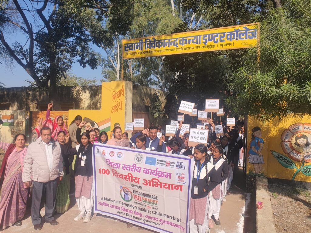 मुजफ्फरनगर। भारत सरकार के बाल विवाह मुक्त भारत अभियान के तहत आज स्वामी विवेकानंद कन्या इंटर कॉलेज, जट मुझेडा में जिले स्तर पर जागरूकता कार्यक्रम का आगाज किया गया। महिला एवं बाल विकास मंत्रालय की केंद्रीय मंत्री अन्नपूर्णा देवी के निर्देशन और जिलाधिकारी उमेश मिश्रा के नेतृत्व में जस्ट राइट फॉर चिल्ड्रन संस्था ग्रामीण समाज विकास केंद्र द्वारा यह कार्यक्रम आयोजित हुआ।