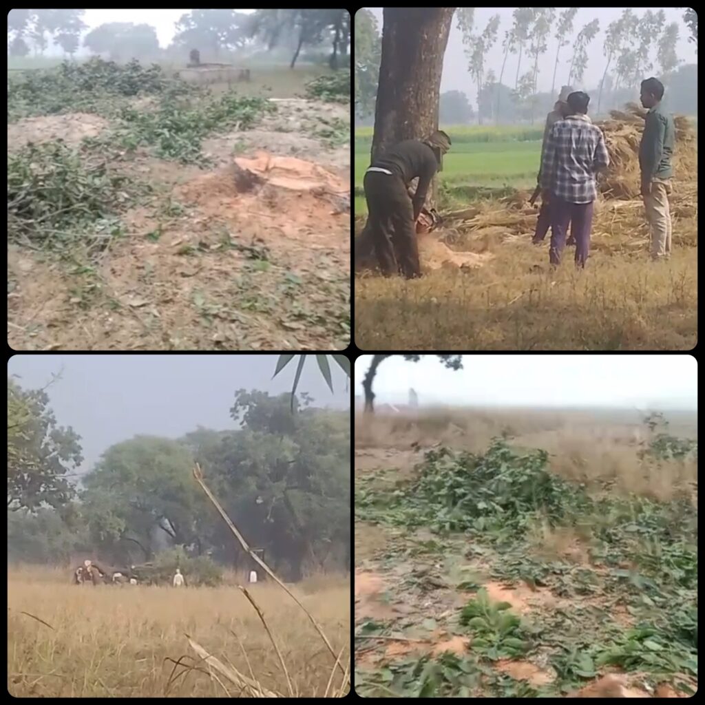 फतेहपुर (गाजीपुर)। गाजीपुर थाना क्षेत्र के सोनवर्षा गांव में पर्यावरण को झकझोर देने वाली गंभीर घटना सामने आई है। गांव में हरे-भरे फलदार आम और महुआ के वृक्षों को बेरहमी से काट दिया गया, जिससे ग्रामीणों में भारी आक्रोश व्याप्त है। ग्रामीणों का आरोप है कि यह पूरा कृत्य पुलिस और वन विभाग की मिलीभगत से अंजाम दिया गया।