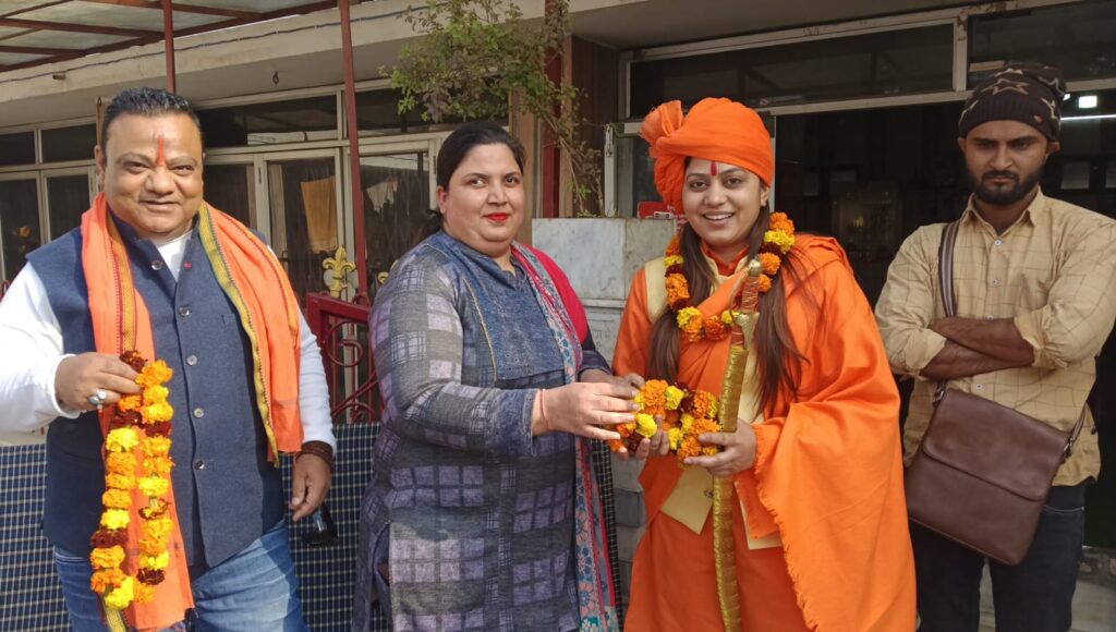 मुजफ्फरनगर। बागेश्वर धाम सरकार पंडित धीरेंद्र शास्त्री की पदयात्रा के बाद अब देशभक्ति गायन से पहचान बनाने वाली प्रसिद्ध सनातनी गायिका कवि सिंह की हिंदू जन जागृति पदयात्रा ने पश्चिमी उत्तर प्रदेश में खासा ध्यान खींच लिया है। उत्तराखंड के हरिद्वार से प्रारंभ होकर श्रीकृष्ण जन्मभूमि मथुरा तक जा रही इस पदयात्रा के तहत सोमवार दोपहर कवि सिंह मुजफ्फरनगर पहुँचीं, जहां हिंदू युवा वाहिनी के क्षेत्रीय संगठन मंत्री एवं सहारनपुर मंडल प्रभारी प्रहलाद पाहुजा के नेतृत्व में कार्यकर्ताओं ने उनका भव्य स्वागत किया।