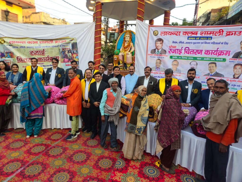 शामली। लायंस इंटरनेशनल डिस्ट्रिक्ट 321 C-1 के यशस्वी डिस्ट्रिक्ट गवर्नर पीएमजेएफ लायन डॉ. विनय सिसोदिया ने आज लायंस क्लब शामली क्राउन में अपनी आधिकारिक यात्रा सफलता पूर्वक सम्पन्न की। इस अवसर पर क्लब द्वारा समाज सेवा की भावना को साकार करते हुए अग्रसेन पार्क, शामली में पाँचवां रजाई वितरण कार्यक्रम आयोजित किया गया, जिसमें कड़ाके की ठंड को देखते हुए 150 जरूरतमंद एवं असहाय परिवारों को रजाइयों का वितरण किया गया।