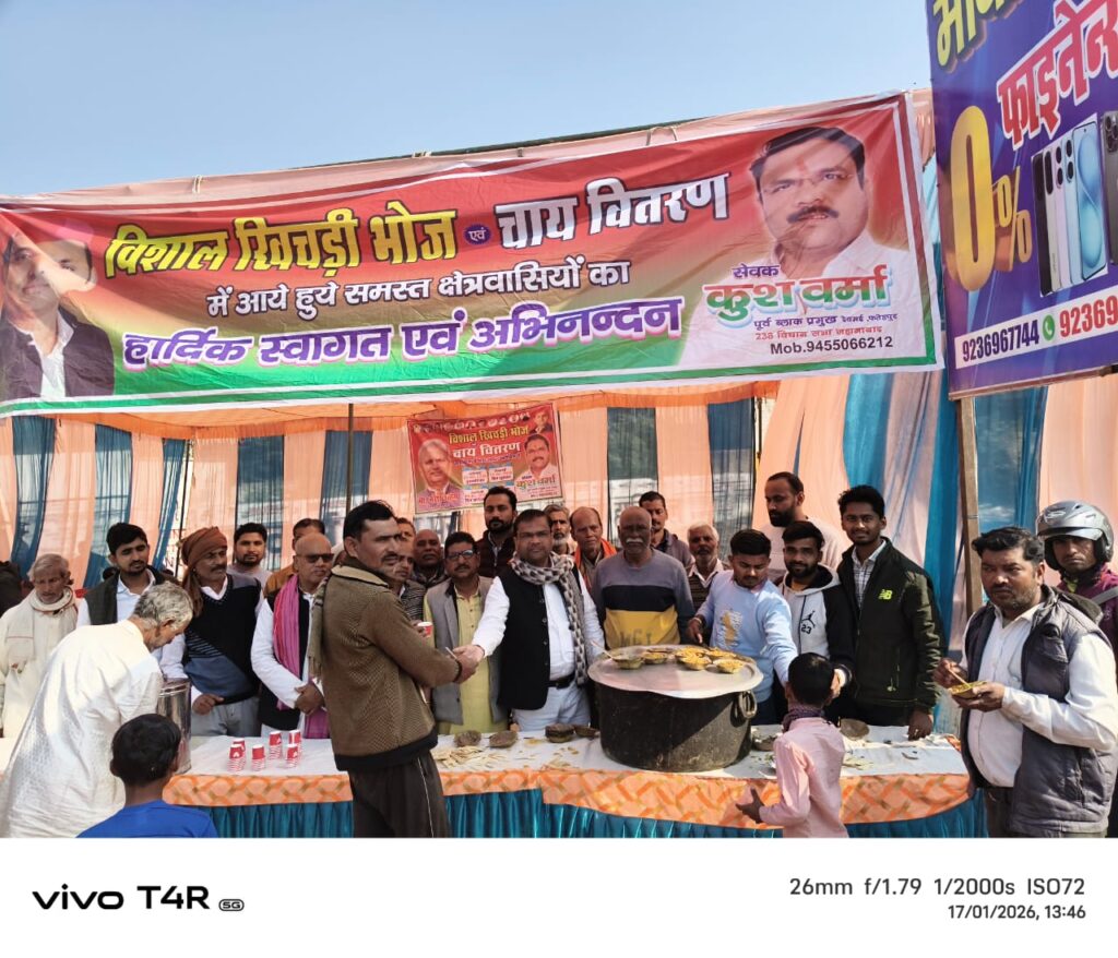 फतेहपुर। अमौली देवमई ब्लॉक के पूर्व ब्लॉक प्रमुख कुश वर्मा की ओर से आयोजित चाय व खिचड़ी के भंडारे में हजारों की संख्या में लोगों ने प्रसाद ग्रहण किया। आयोजन क्षेत्र में चर्चा का विषय बना रहा। सुबह से ही लोगों का आना-जाना शुरू हो गया था, जो देर शाम तक चलता रहा। ठंड के मौसम में चाय और गरम खिचड़ी की व्यवस्था से ग्रामीणों और आगंतुकों को काफी राहत मिली।