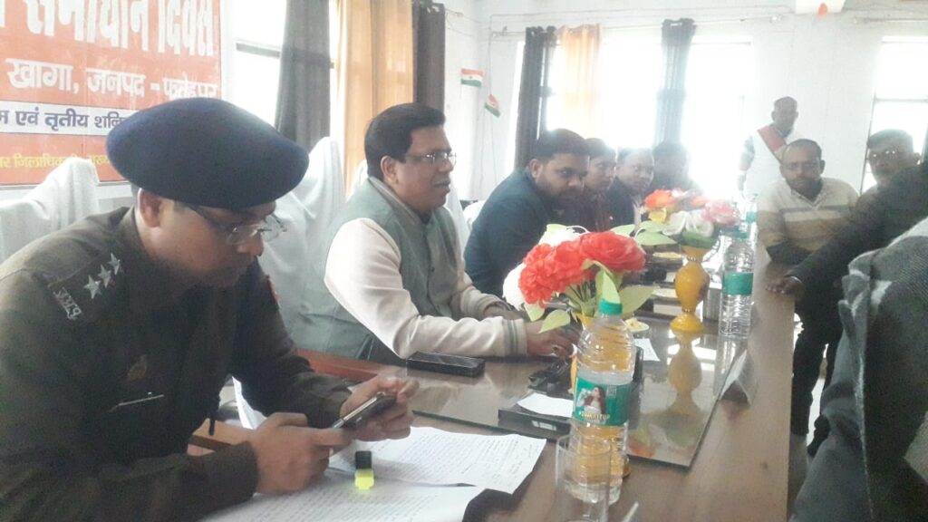 इस मौके पर खागा उपजिलाधिकारी अभिनित कुमार, खागा तहसीलदार श्रीमती शैल कुमारी,नायाब तहसीलदार अरविन्द्र कुमार, नायाब तहसीलदार ओम प्रकाश,नायाब तहसीलदार अशोक सिंह, खागा क्षेत्राधिकारी दुर्गेश दीप, पूर्ति निरीक्षक हरीश कुमार साहानी,अविनाश पाण्डेय,खागा राजस्व निरिक्षक अरविन्द्र सिहं,कृषि एडीओ देवेन्द्र कुमार मिश्रा,खागा नगर पंचायत आधिशाषी अधिकारी देवहूति पाण्डेय, राजस्व निरिक्षक अशोक सचान,लेखपाल कमल सिहं, मनोज कुमार,सुशील कुमार, उमेश कुमार,खागा जे.ई डी.डी सोलंकी सहित समस्त थानों के प्रभारी व थानाअध्यक्ष,सभी विभाग के आधिकारी व कर्मचारी सहित मौजूद रहें।