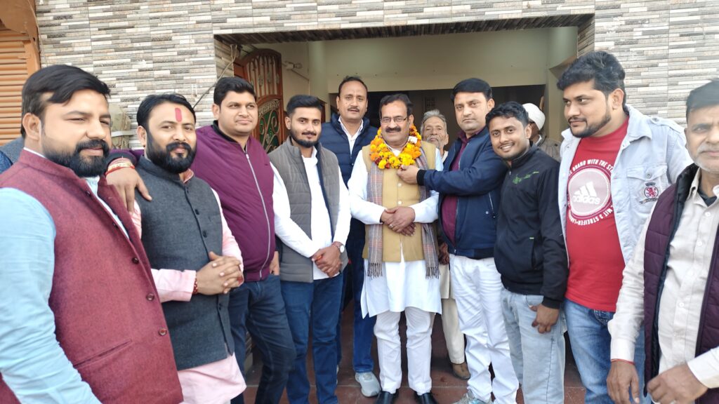 मुज़फ्फरनगर। मंदवाड़ा रोड स्थित विनोद सैनी के आवास पर उस समय उत्सव जैसा माहौल देखने को मिला, जब भूमि विकास बैंक के चेयरमैन पद पर विनोद सैनी के निर्विरोध निर्वाचित होने की सूचना के बाद भारतीय जनता पार्टी के कार्यकर्ता बड़ी संख्या में पहुंचे। कार्यकर्ताओं ने मिठाई खिलाकर और फूल-मालाएं पहनाकर विनोद सैनी का गर्मजोशी से स्वागत किया और इस जीत को संगठन व किसानों की जीत बताया।