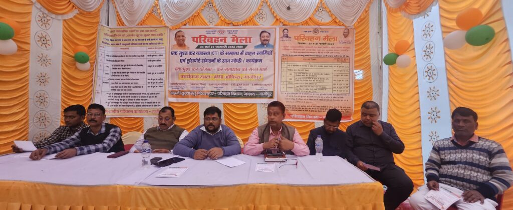 गाजीपुर। परिवहन विभाग, जनपद गाजीपुर द्वारा 20 व 21 फरवरी 2026 तक परिवहन मेला का आयोजन किया गया है। यह मेला ARTO कार्यालय, गाजीपुर परिसर में आयोजित किया जा रहा है, जिसका उद्देश्य वाहन स्वामियों और परिवहन संगठनों को एकमुश्त कर व्यवस्था (OTT) के संबंध में जानकारी देना तथा कर समाधान की प्रक्रिया को सरल बनाना है।