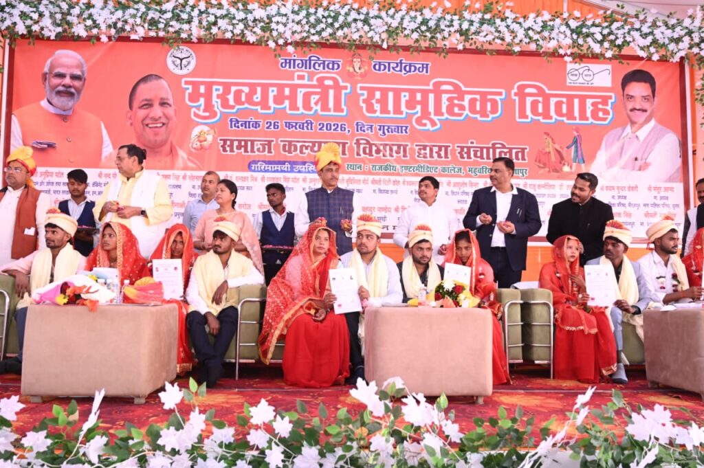 मीरजापुर। समाज कल्याण विभाग द्वारा संचालित मुख्यमंत्री सामूहिक विवाह योजना का वृहद कार्यक्रम (मेगा इवेन्ट के रूप में) राजकीय इण्टरमीडिएट कालेज महुवरिया, मीरजापुर में आयोजित कराया गया, जिसमें जनपद के समस्त विकास खण्ड/नगर निकाय, मीरजापुर के अनुसूचित जाति के 163, अन्य पिछड़ावर्ग के 93 एवं अल्पसंख्यक वर्ग के 05 अर्थात कुल 261 जोड़ों का सामूहिक विवाह सकुशल सम्पन्न कराया गया। कार्यक्रम के शुभ अवसर पर विधायक नगर रत्नाकर मिश्र विधायक छानबे रिंकी कोल, अध्यक्ष जिला पंचायत राजू कनौजिया, अध्यक्ष नगर पालिका श्याम सुन्दर केसरी, जिलाधिकारी पवन कुमार गंगवार, मुख्य विकास अधिकारी विशाल कुमार, परियोजना निदेशक, डी0आर0डी0ए0 धरमजीत सिंह, डी0सी0एन0आर0एल0एम0 रमाशंकर सिंह, जिला समाज कल्याण अधिकारी राम विलास यादव एवं जनपद के समस्त खण्ड विकास अधिकारी/नगर निकाय अधिकारी, मीरजापुर उपस्थित रहकर नव दम्पतियों को अपना आशीर्वाद प्रदान कर उनके सुखद एवं मंगलमय जीवन की कामना की।