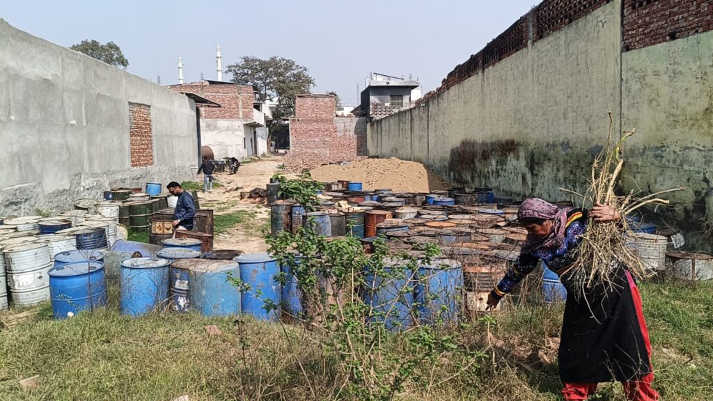 स्थानीय लोगों की लगातार शिकायतों के बाद उत्तर प्रदेश प्रदूषण नियंत्रण बोर्ड की टीम ने जेई राजा गुप्ता के नेतृत्व में मौके पर छापेमारी की। जांच के दौरान “एनआर ट्रेडिंग” नाम से संचालित प्लांट परिसर और आसपास के खाली प्लॉटों में सैकड़ों केमिकल ड्रम खुले में बिखरे मिले। इन ड्रमों से उठती तीखी दुर्गंध पूरे इलाके की हवा को दूषित कर रही थी।
