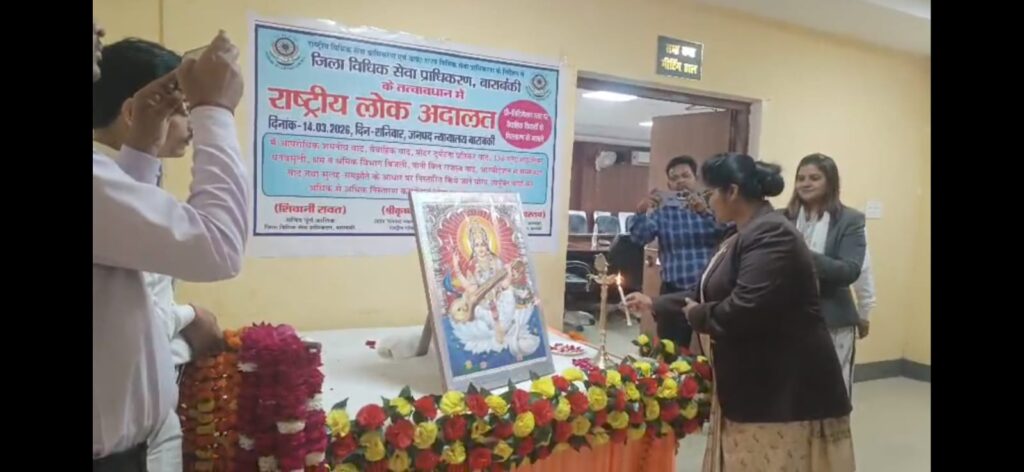 बाराबंकी। बाराबंकी में आयोजित राष्ट्रीय लोक अदालत का शुभारंभ जिला जज प्रतिभा श्रीवास्तव एवं अन्य समस्त न्यायिक अधिकारियों द्वारा दीप जलाकर एवं मां सरस्वती के चित्र पर माल्यार्पण करके किया गया, जहां पर विभिन्न विभागों, बैंकों और फाइनेंशियल कंपनियों ने अपने स्टॉल लगाए और