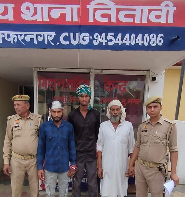 थानाध्यक्ष तितावी के कुशल नेतृत्व में पुलिस टीम ने 19 मार्च 2026 को सूचना के आधार पर राजवीर के ट्यूबवेल के पास स्थित ईंख के खेत में दबिश दी। यहां से पुलिस ने अख्तर पुत्र सीनू, आमिर पुत्र अख्तर और मुन्ना पुत्र अख्तर को गिरफ्तार कर लिया। तीनों आरोपी एक ही परिवार से बताए जा रहे हैं और इनके खिलाफ पहले से मुकदमा दर्ज था।