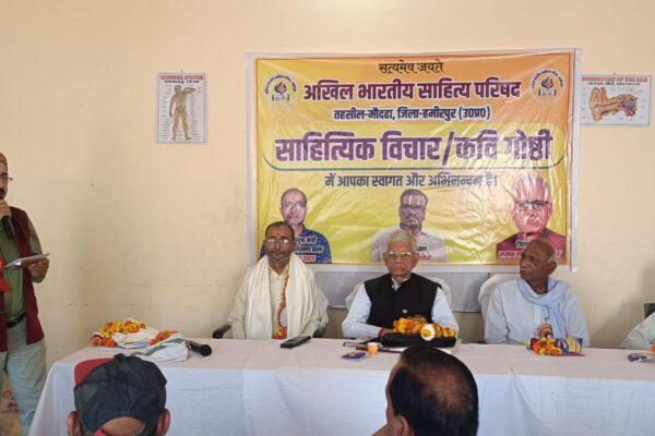 रिपोर्ट – हरीश हमीरपुर। अखिल भारतीय साहित्य परिषद की मौदहा तहसील इकाई के तत्वावधान में मौदहा थाना चौराहा के पास होली मिलन एवं कवि सम्मान समारोह आयोजित किया गया।कार्यक्रम के संयोजक एवं तहसील इकाई अध्यक्ष हरी प्रकाश कुशवाहा ने अंगवस्त्र और फूल माला से सभी साहित्यकारों को सम्मानित किया। कार्यक्रम के मुख्य अतिथि प्रांतीय संयुक्त…